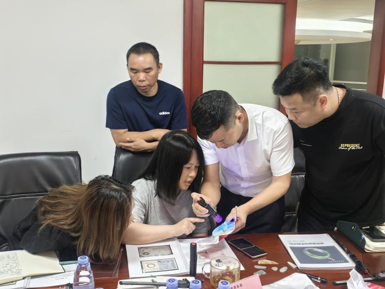 此次培训特邀深圳广艺翡翠珠宝文化咨询有限公司的专业授课团队主讲,授课人员凭借扎实的理论功底与丰富的实战经验,为恒源典当及同业员工开展系统性知识讲解。培训内容聚焦翡翠业务核心需求,涵盖真伪鉴定、品质评价、价值核定等关键模块,授课团队通过大量实物展示与上手实操训练,帮助员工直观掌握不同品质翡翠的差异特征,熟练掌握真假辨别、优劣判断及基础估价方法。